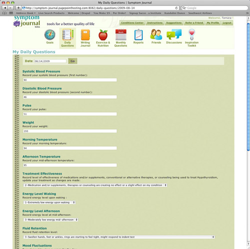 It’s difficult to understand, without seeing all the puzzle pieces in place the connection between our symptoms and our daily outcomes. In your Symptom Checklist you have created a baseline symptom snapshot of your health currently, and in your Daily Questions you will be keeping track of your personal health statistics on an ongoing basis. Recording your information consistently will help you know where you are today, next week, next month and next year. Symptom Journal is a powerful tool in managing and improving your chronic health condition; your journaling allows you to understand how the different statistics are connected and how they affect your health.